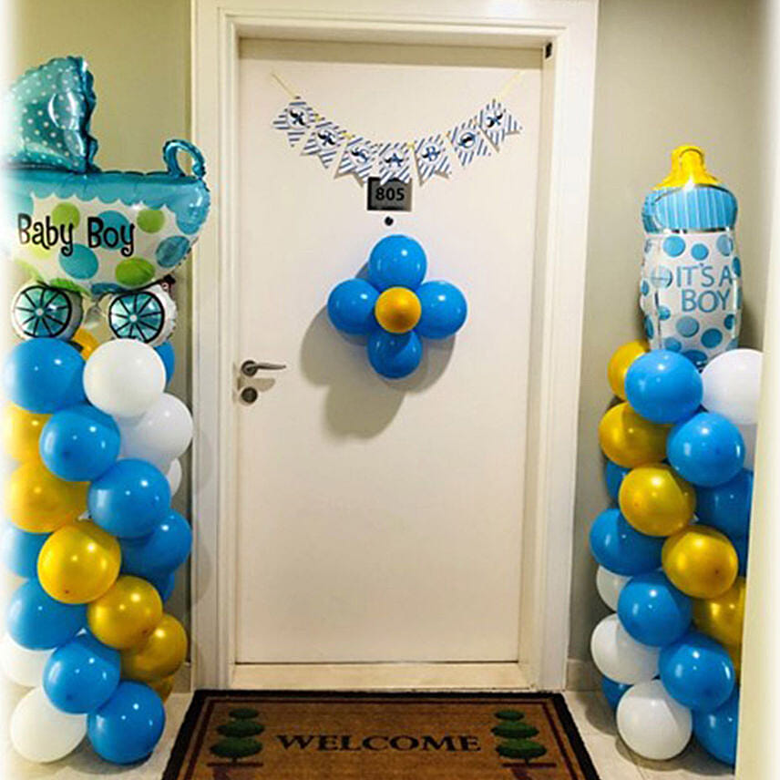 • 2 Balloon pillars Baby Pink or Baby Blue color with Cradle & Milk Bottle foil balloon