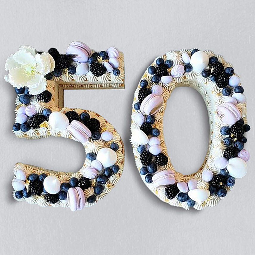 Number 50 Macarons Blueberries Vanilla Cake