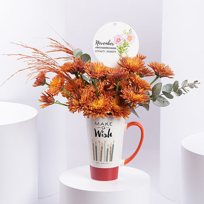 Orange Chrysanthemums Birthday Mug