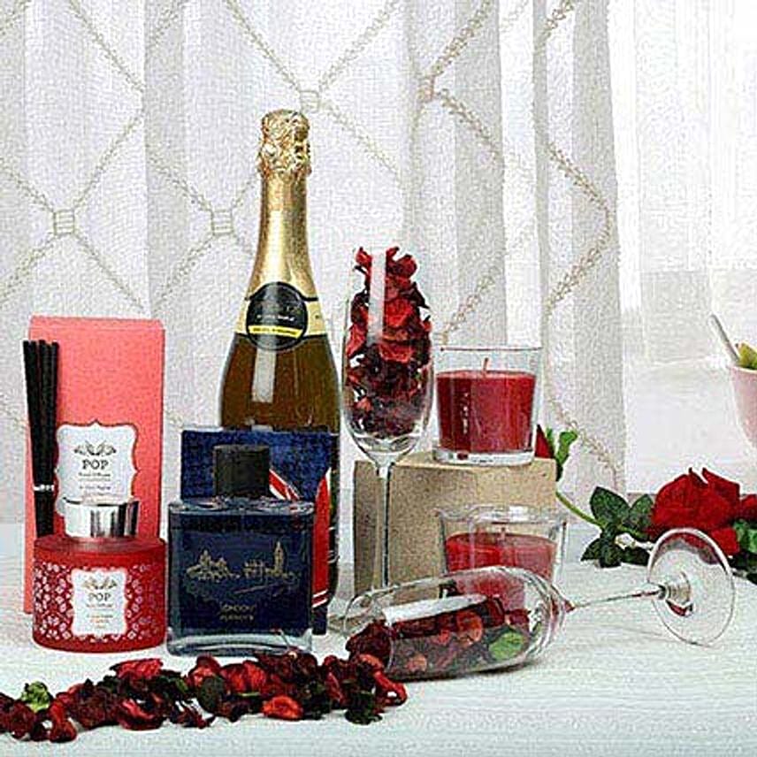 If you are looking for a gorgeous and useful gift hamper to present your loved ones then you can buy this one from Ferns N Petals. It includes a bottle of sparkling juice with two champagne glasses, red scented candles, a pack of potpourri, a diffuser and a perfume bottle.