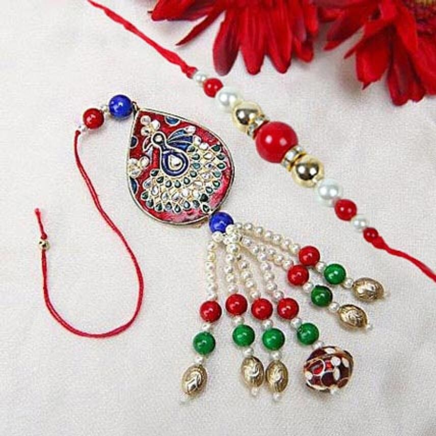 • Multicolor Beaded Peacock Lumba Rakhi with complimentary Roli Chawal.
