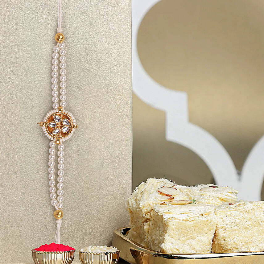 Pearl Kundan Designer Rakhi And Soan Papdi