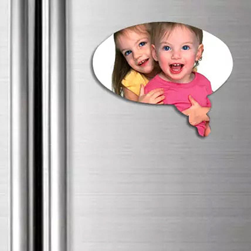 • 1 Personalized Fridge Magnet Oval Shape (Height 3 Inches & Width 6 Inches)