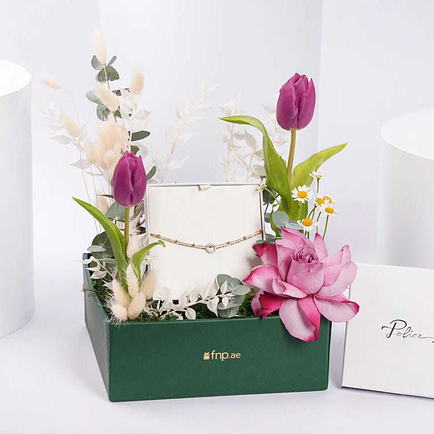 A perfect blend of fine jewelry and floral finesse, this arrangement is a go-to choice for birthdays, anniversaries, or any heartfelt occasion.