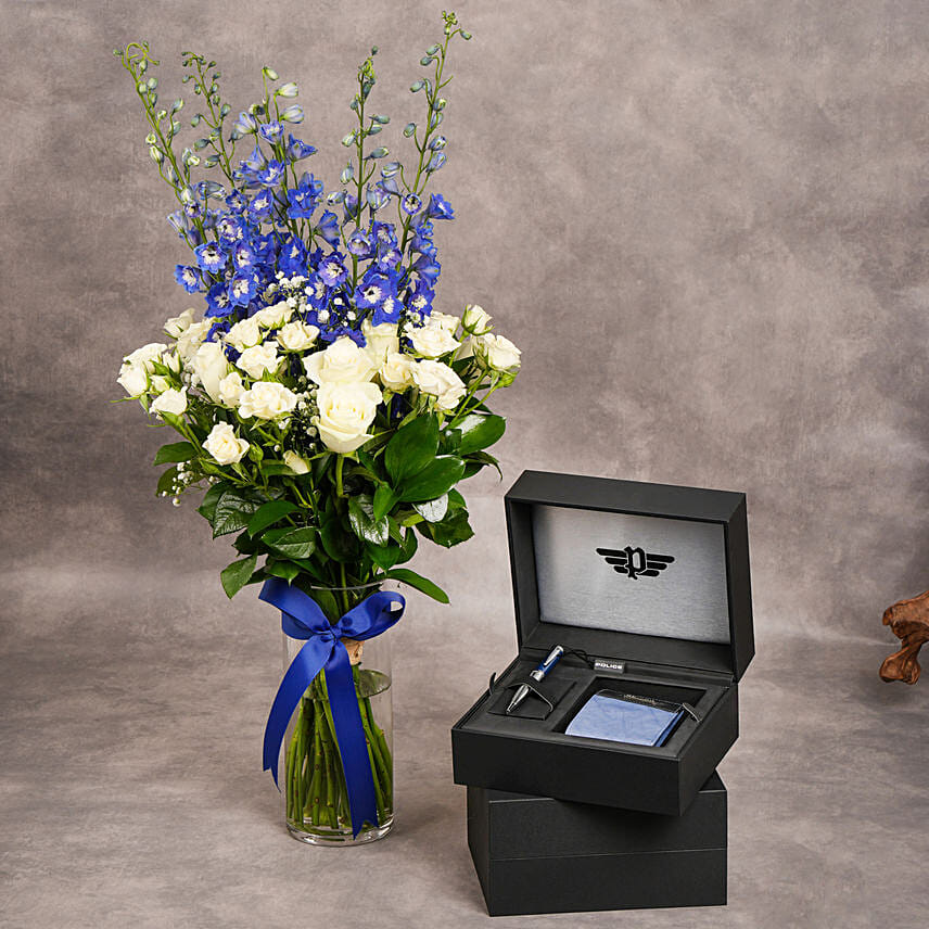 Police Wallet And Accessories Gift Set With Flowers For Him