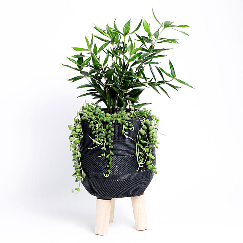 Potted Dracena Surculosa With Hanging Senecio Rowleyanus Plant