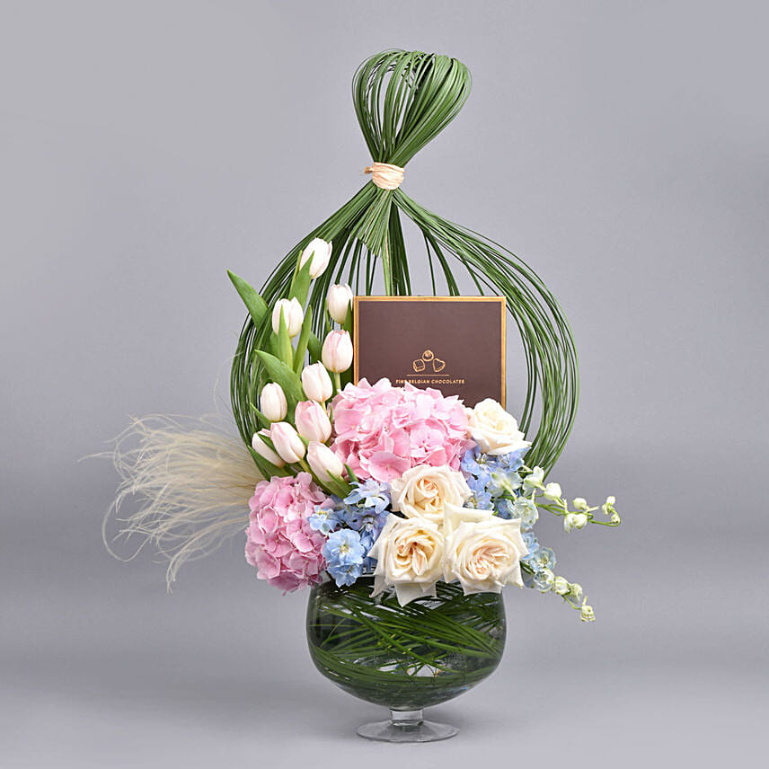 Premium Belgian Chocolate Box with Flowers