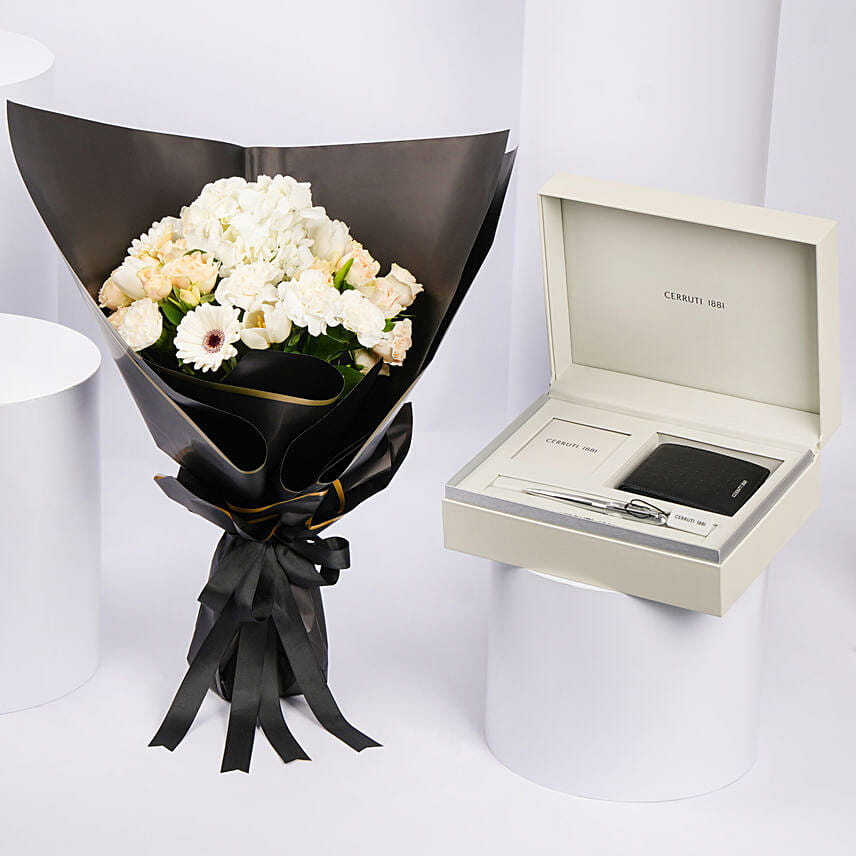 Premium Pen And Wallet Gift Set By Cerruti With Flowers