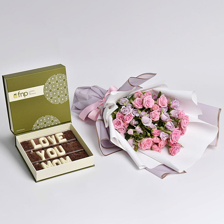 Purple and Pink Spray Roses Bunch With Chocolates