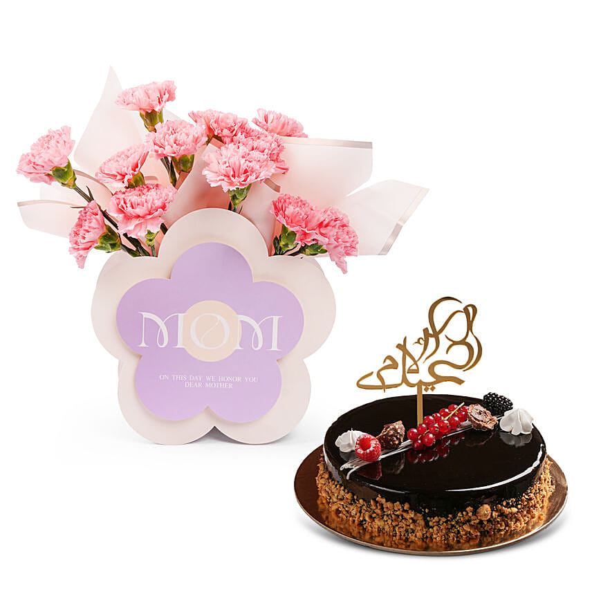 • This stunning gift set features the Purple Love MOM floral arrangement paired with a crunchy hazelnut chocolate cake 500gm. The vibrant flowers express admiration and appreciation, while the cake adds a delicious finishing touch to the celebration.