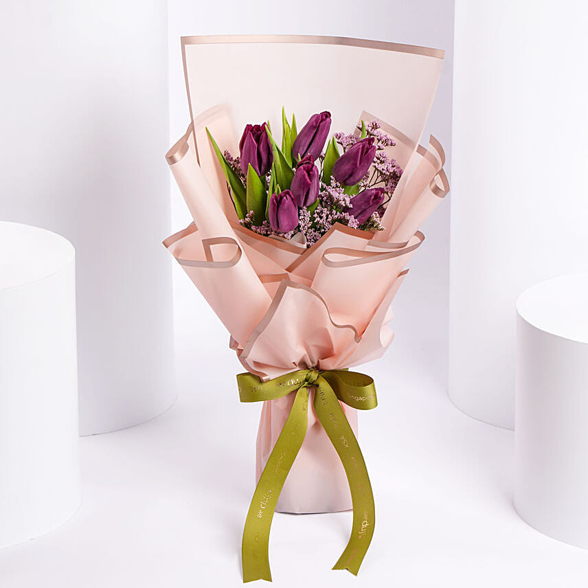 • Flower Type : Dark Purple Tulips (6), Green Ruscus, Purple Limonium (3)