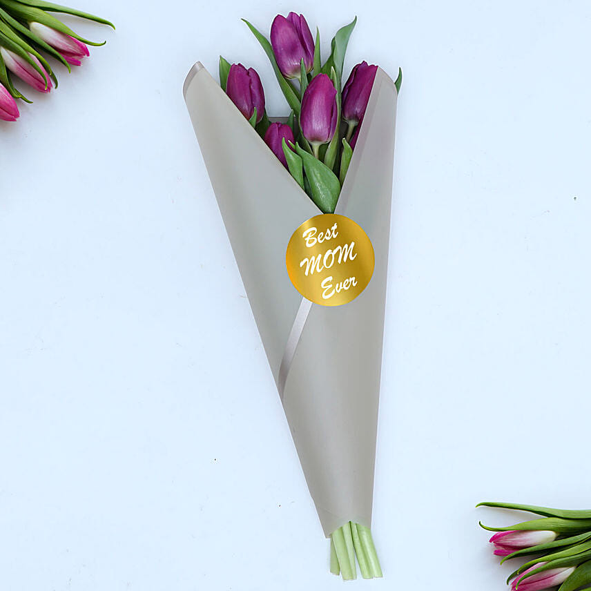 Purple Tulips Bouquet For Mom