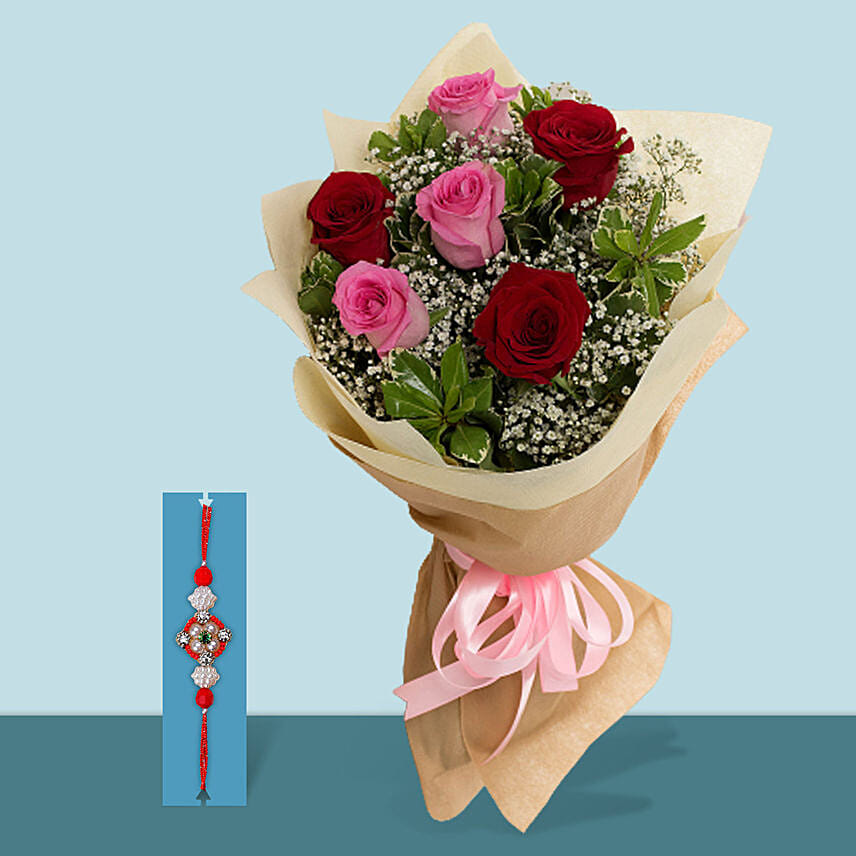 Rakhi With Red n Pink Roses