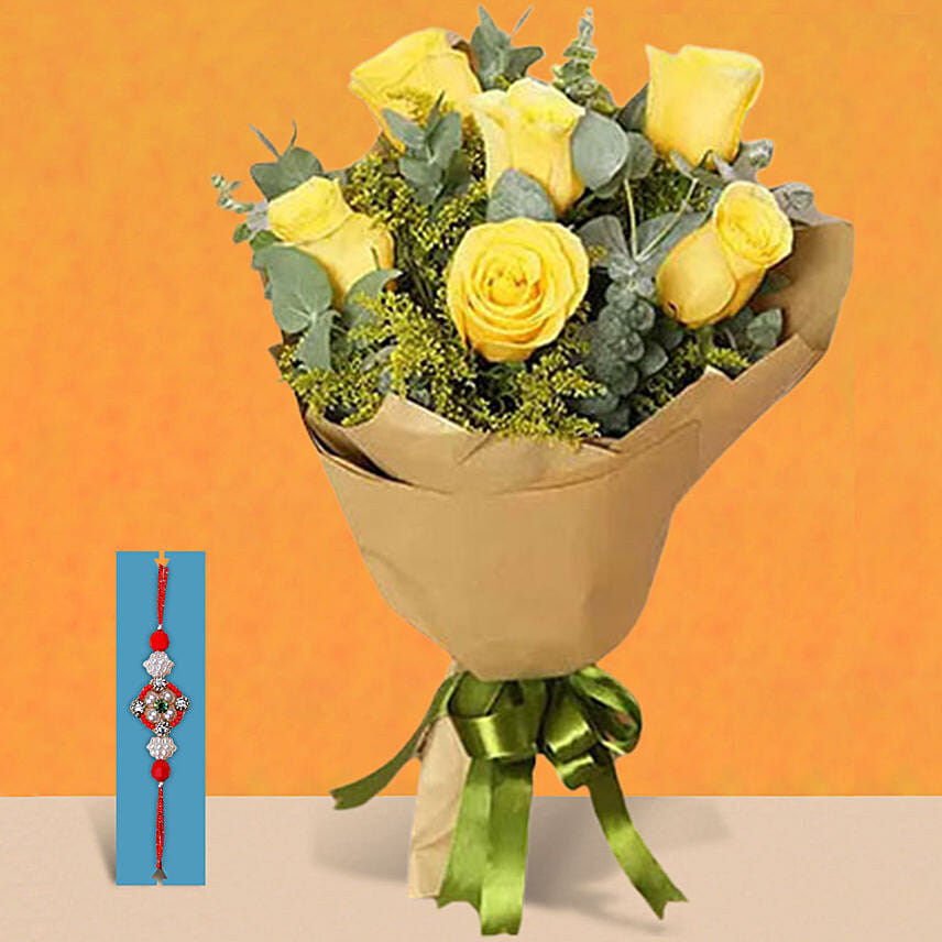 Rakhi With Yellow Roses Bouquet