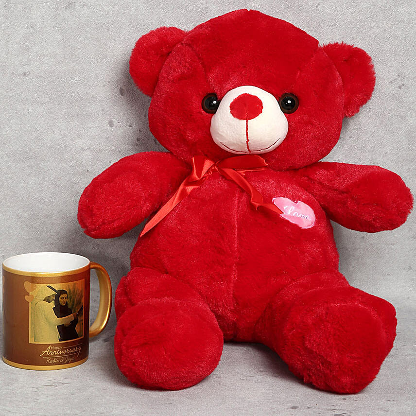 Red Teddy Bear and Personalised Anniversary Mug Gift Set