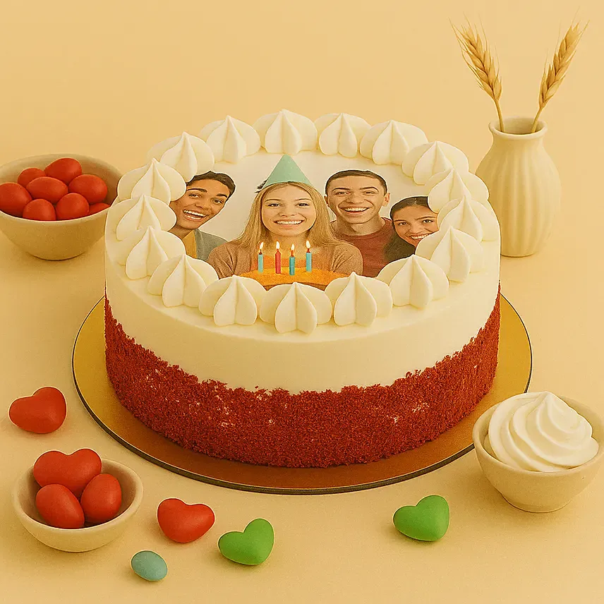Red Velvet Photo Cake For Birthday 1.5 kg