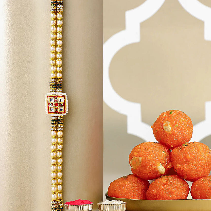 Celebrate Raksha Bandhan with our stunning Regal Ethnic Rakhi, shining in beautiful gold tones and gemstones showcasing elegance and luxury. Adorned with intricate designs, it exudes a timeless charm and sophistication. This Rakhi is carefully crafted with attention to detail, reflecting tradition with a touch of glamour. Its shimmering gold colours make it feel royal and special, perfect for honouring the bond between siblings. Great for brothers who honour tradition with a touch of elegance.