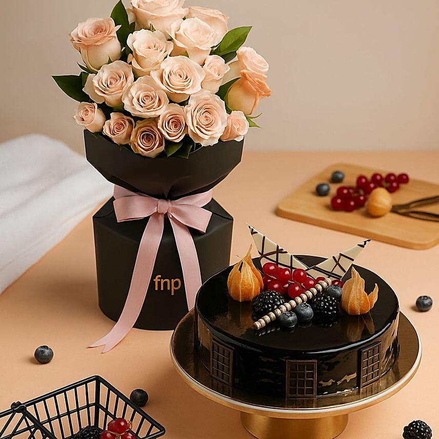 Roses Beauty Arrangement with Truffle Cake Combo