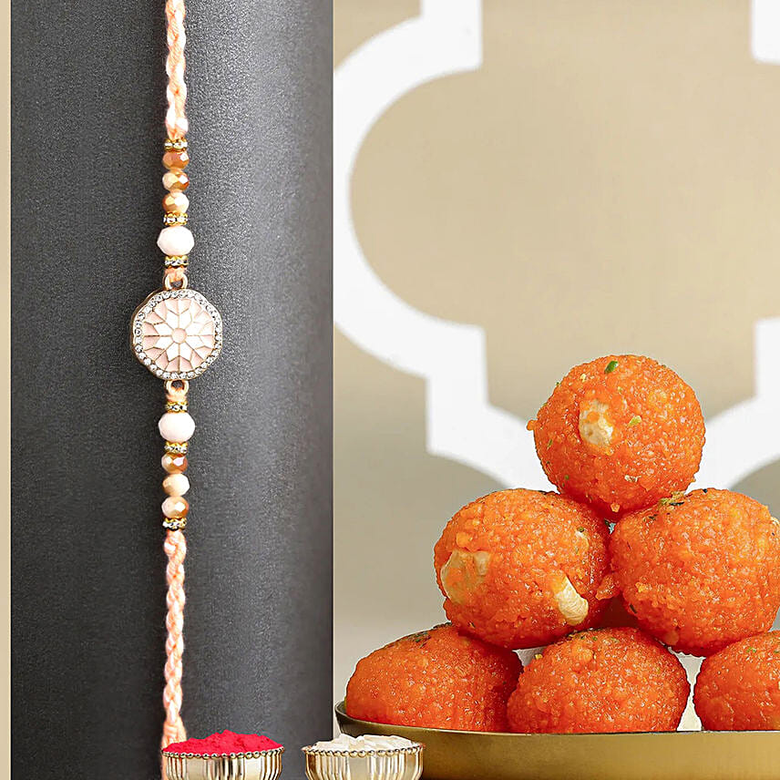 Rosy American Diamond Rakhi N Motichoor Laddoo