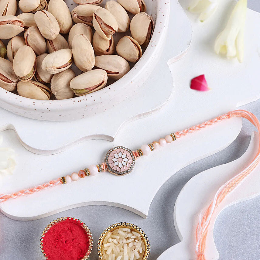 Rosy American Diamond Rakhi N Pistachio Combo