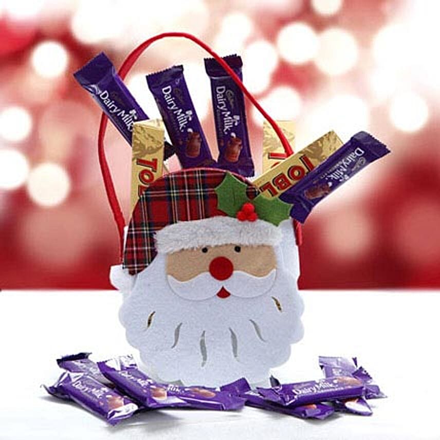 Looking for a sweet beginning to start the festive celebrations of your loved ones? Go for this Santa felt with 15 pcs dairy milk (14 gms each) and 3 Toblerone Chocolates. Really a smart way to add sweetness to your celebrations and deserves your immediate attention without any further delay. Order it now for your loved ones and help in bringing smiles on their faces for a long time.