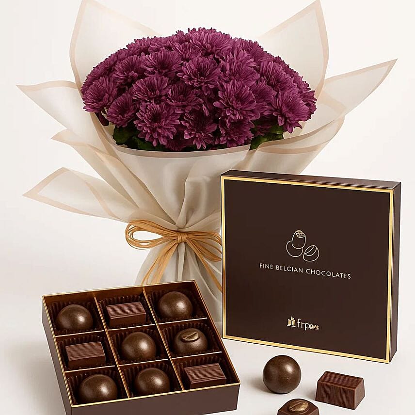 • Rustic Purple Bloom Bouquet 9 premium chocolates