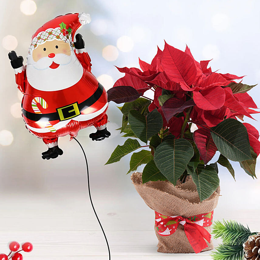 • 1 Poinsettia Plant in a Jute Wrapping with Ribbon Bow