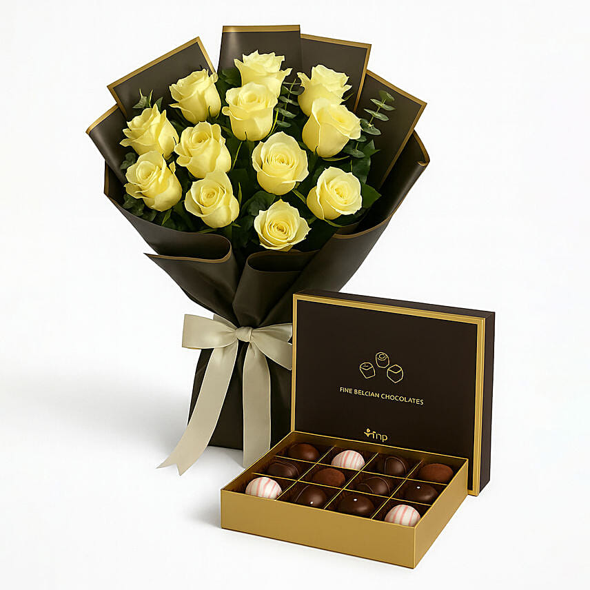 Serene White Rose Bouquet with Truffle Chocolate Combo