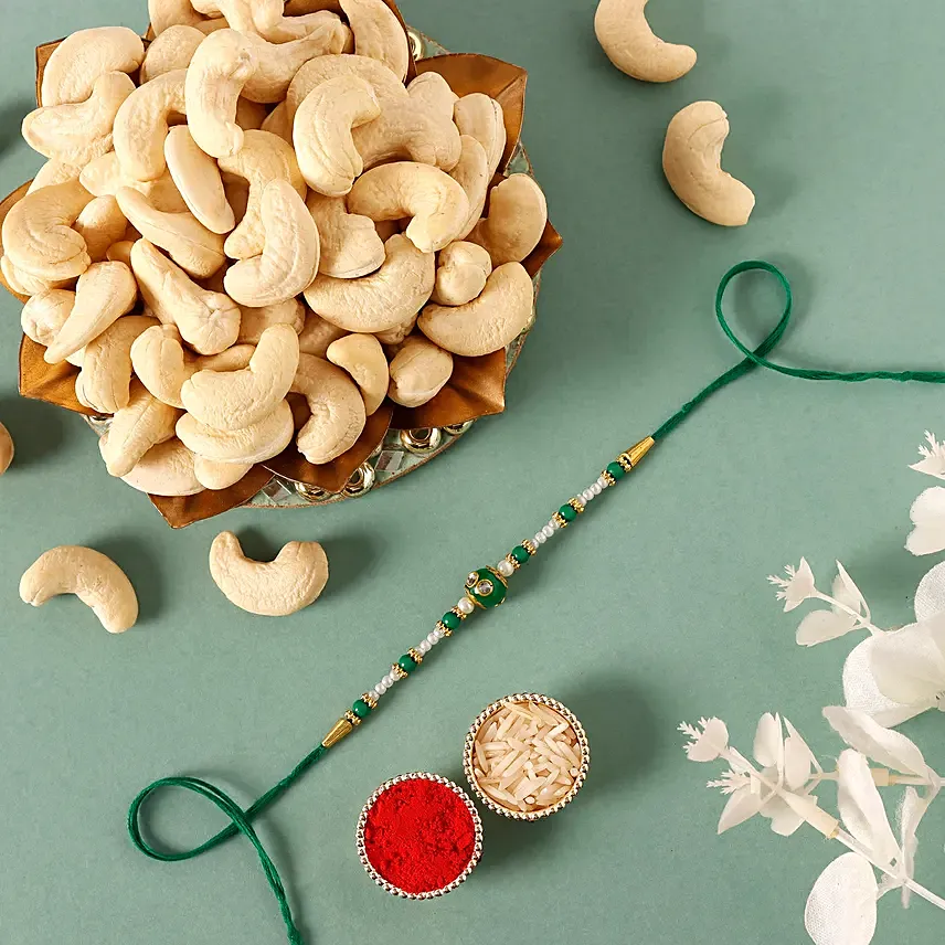Sneh Fancy Green Rakhi with 100 Grams Cashew