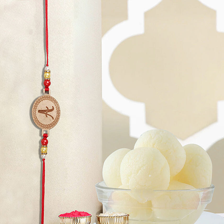 Celebrate the joyous occasion of Raksha Bandhan with the Sneh Oval Shaped Rakhi. This rakhi, with its delicate oval shape, symbolizes the precious bond between siblings. Customise it with your brother's name or a special message to make it a truly personal and heartfelt gift. As a symbol of tradition, we offer complimentary roli chawal for the sacred ceremony. Present your brother with this personalised small oval rakhi, a token of your love and the cherished memories you share.