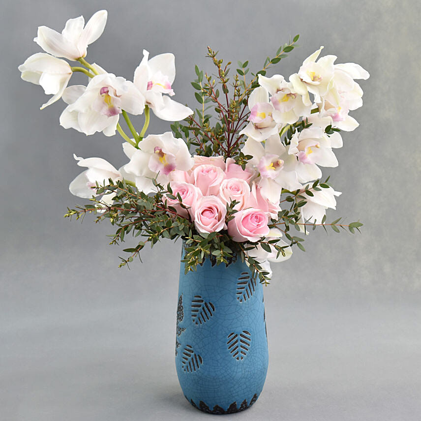 Nothing shows your love more than a blue vase of mixed flowers, the most delicate and evocative flowers on earth. Gorgeous and fresh, our exotic flowers are carefully selected to create the ultimate arrangement.