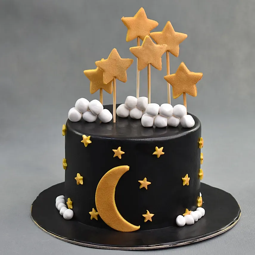 • Fondant Cake with Star and Moon Design