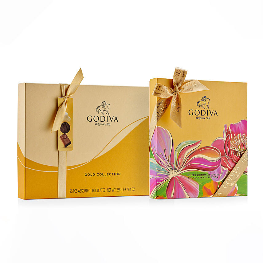 Discover a beautiful gift set, designed with summer flowers. Our Assorted gold collection 25pcs pieces paired with our naplotians that combines delightful assortment of chocolates to all chocolate lovers.