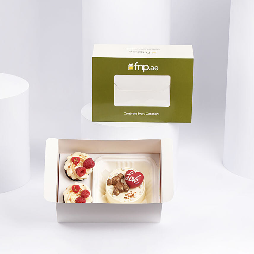 Celebrate in style with 'Bento & Cupcake' a perfect pairing for any moment! This charming box features a beautifully crafted bento cake alongside two delectable cupcakes. Whether you're marking a special milestone or simply savoring a sweet moment, 'Bento & Cupcake' adds a touch of elegance and flavor to your day. Treat yourself and your loved ones to this delightful combination of artistry and taste
