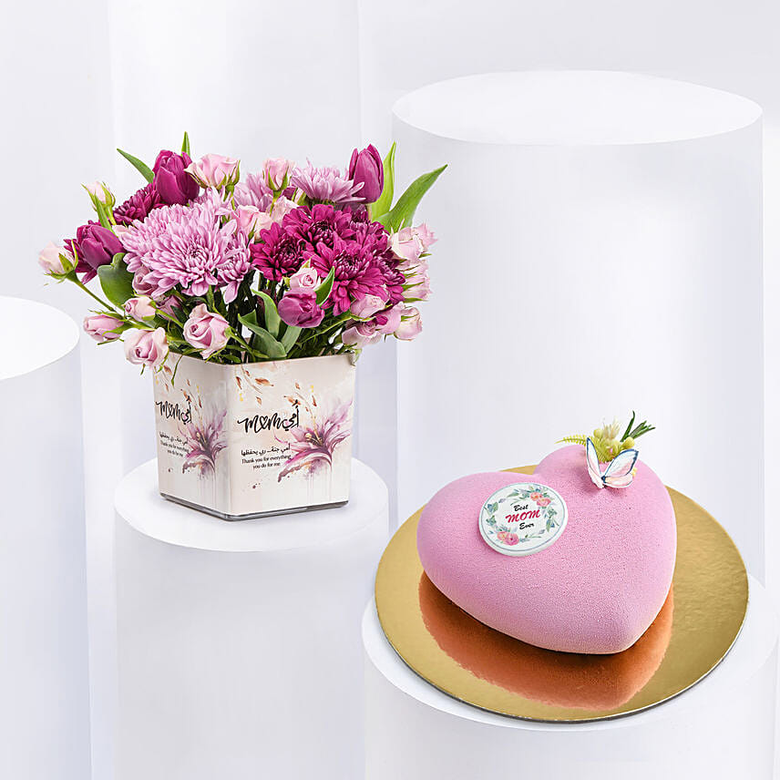 Thanks Mom Flowers Arrangement And Cake