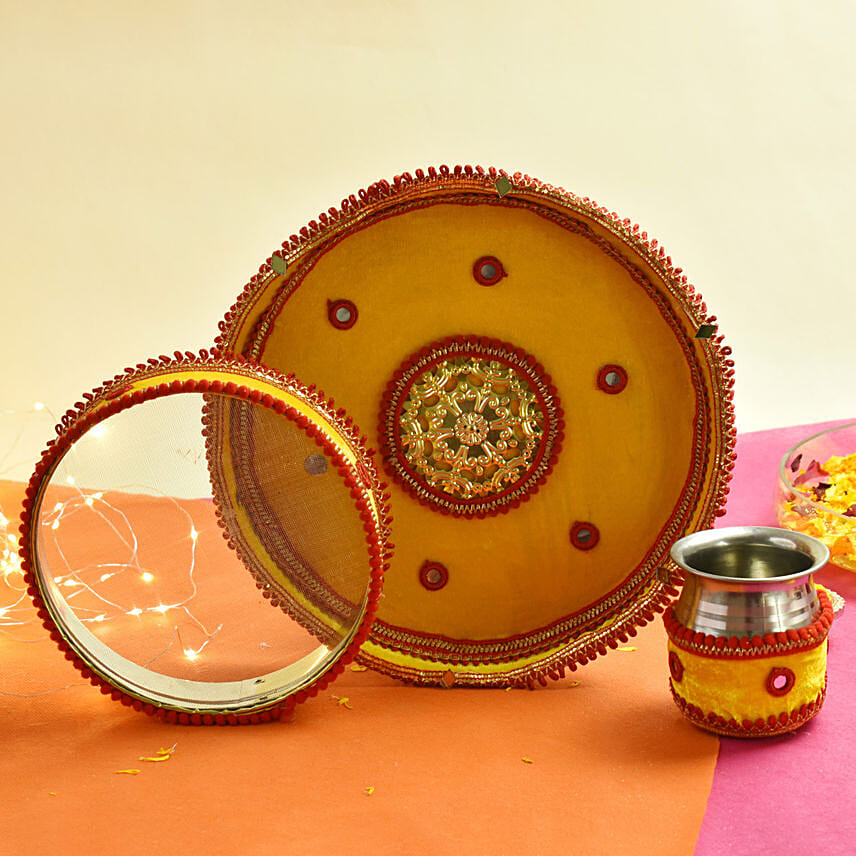 • Use this beautiful thali set in your Karwachauth Pooja celebrations and add an ethnic touch