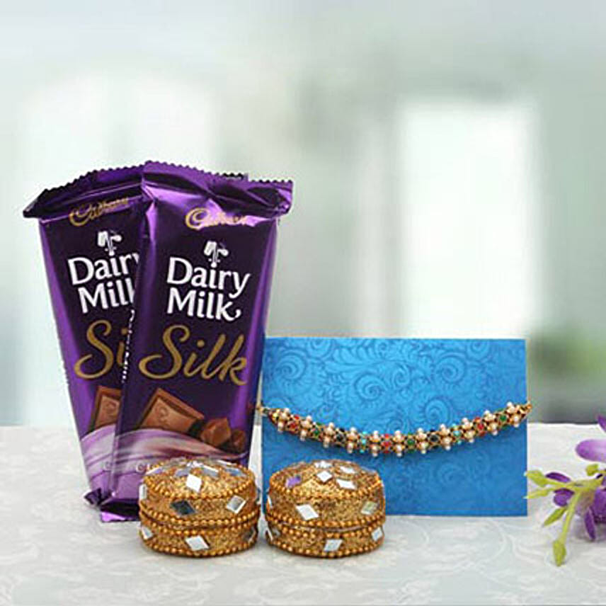 Sheer extravaganza is what this beautiful hamper is all about. You will have beaded rakhi with a very intricate and elegant work that would make your brother happy. For this upcoming Raksha Bandhan festival gear up with this hamper of sweetness.