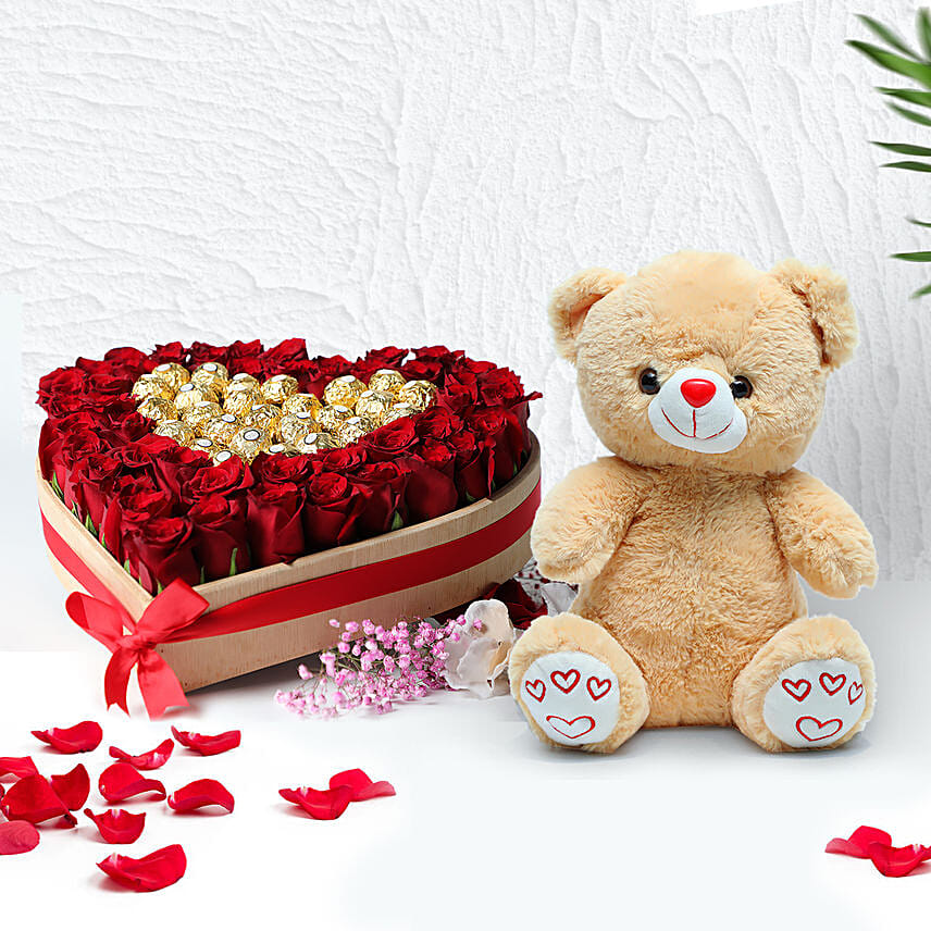 • Beautifully Arranged in a Heart Shape Wooden Base