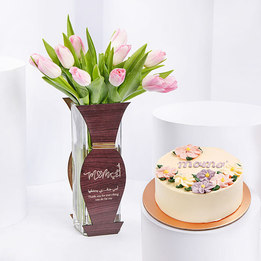 Ummi Janha Pink Tulips Arrangement And Cake