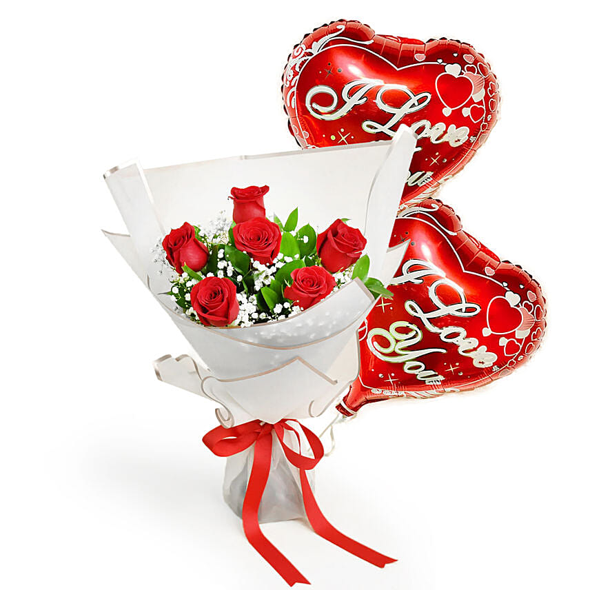 Valentine 6 Roses Bouquet With Balloons