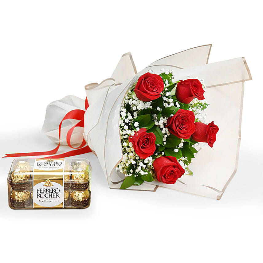 6 Red Rose Beauty Bouquet With Ferrero Rocher