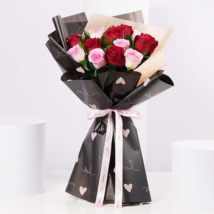 Valentine Red And Pink Roses Bouquet
