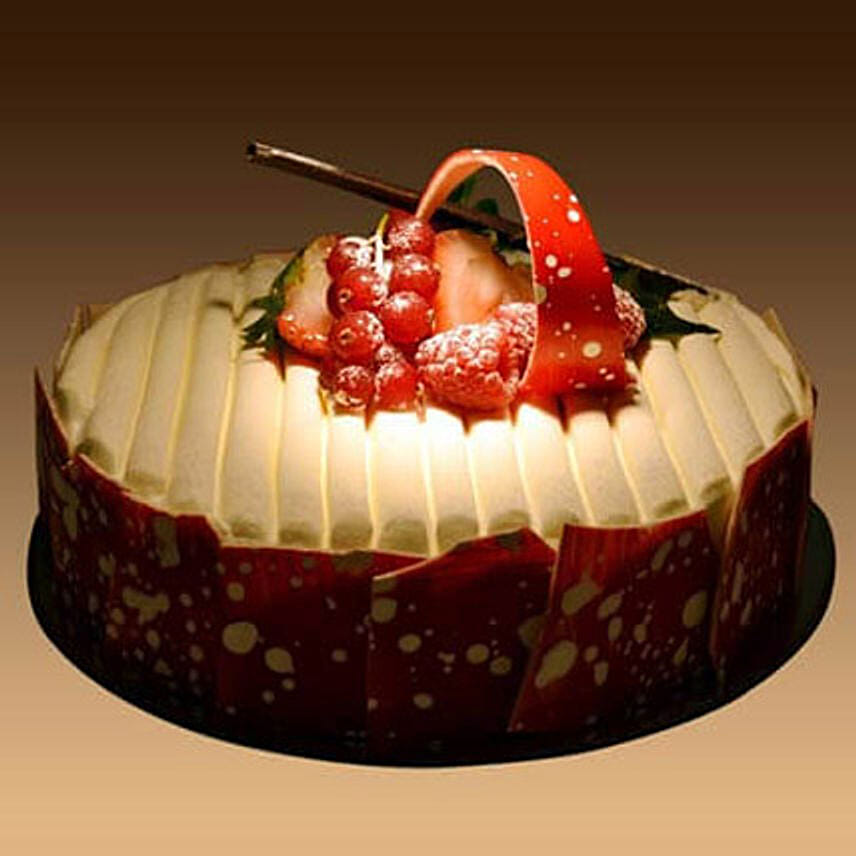 4 People serving mouth-watering Vanilla Temptation Cake contains Vanilla sponge cake with vanilla icing topped with white chocolate thin bars and fresh strawberries. This together makes up an irresistible treat for anyone and is really hard to ignore. Enjoy the heavenly feeling by serving yourself with this exotic and luscious Vanilla cake.