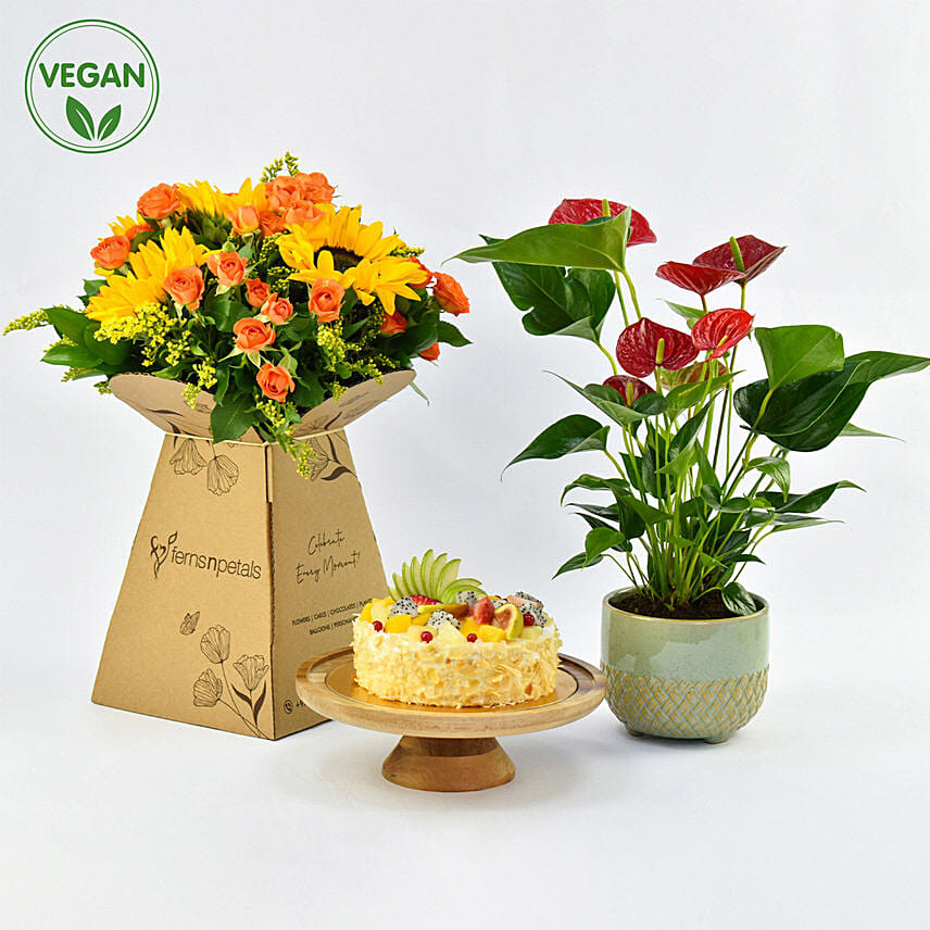 • Vegan Vanilla Sponge Filled with Fresh Fruits inside and on top