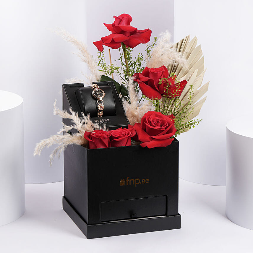 This gift set offers the perfect blend of luxury and natural beauty. The Versus Versace watch is a timeless accessory that complements any outfit, while the floral gift box adds a touch of elegance and warmth. It’s an ideal choice for the woman who appreciates both fashion and thoughtful details, making her feel truly special on any occasion.