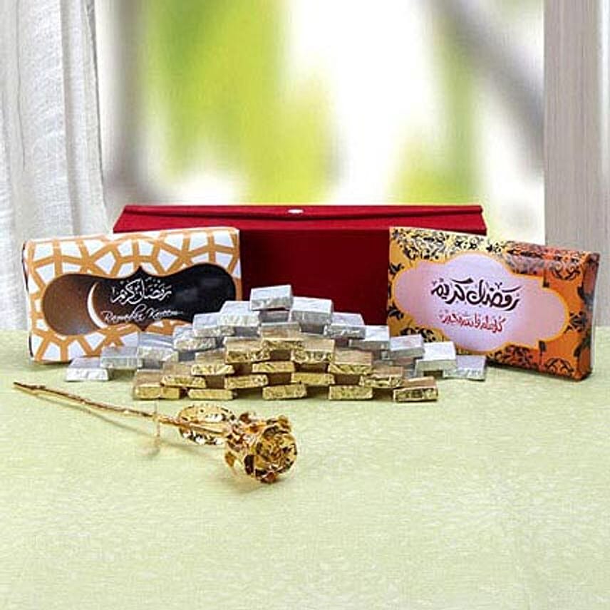 For the ultimate chocolate lover, this gift hampers comprising of Lindt chocolates with Ramadan Kareem wrapper, handmade chocolates, and a golden rose is an indulgent parcel for any chocoholic you know including yourself. They are sure to melt your loved one's heart in the upcoming festive season.