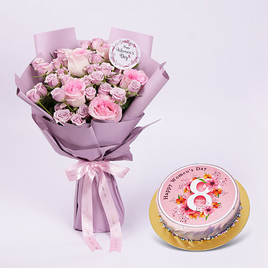 Womens Day Chocolate Cake with Bouquet of Mixed Flowers Combo