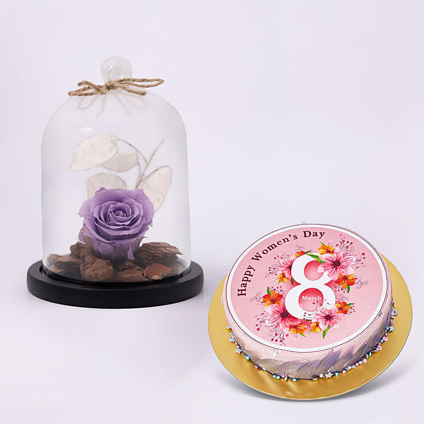 Womens Day Chocolate Cake with Purple Forever Rose Combo