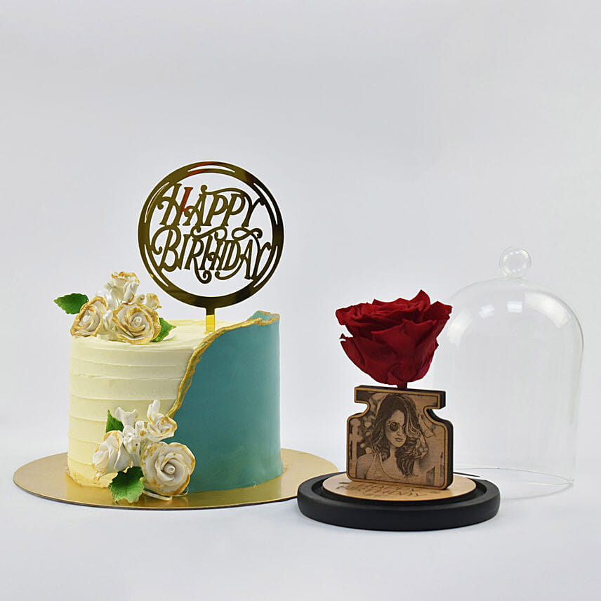 Your Special Birthday Celebration Marble Cake and Personalised Forever Rose
