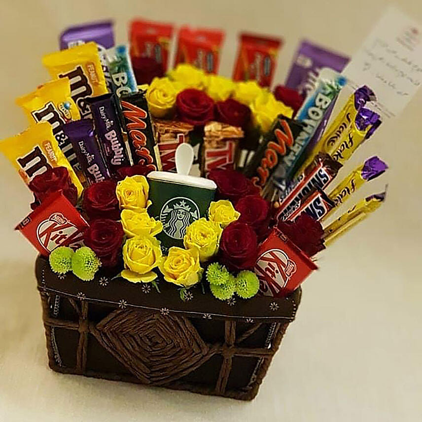 With a good looking and yummy mix of chocolate bars and gorgeous flowers, the chocolate Bouquet is the perfect surprise to send to your family, friends, and loved ones. A great option for any occasion, this sweet bouquet promises to deliver your message of love and affection to those who care about you.
